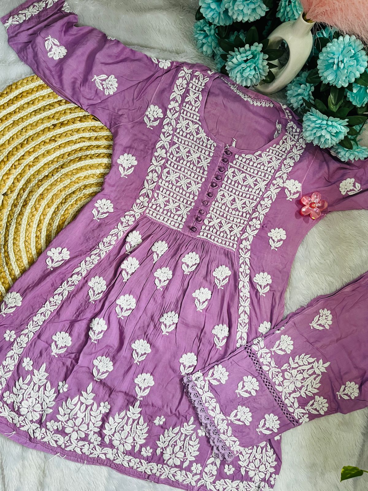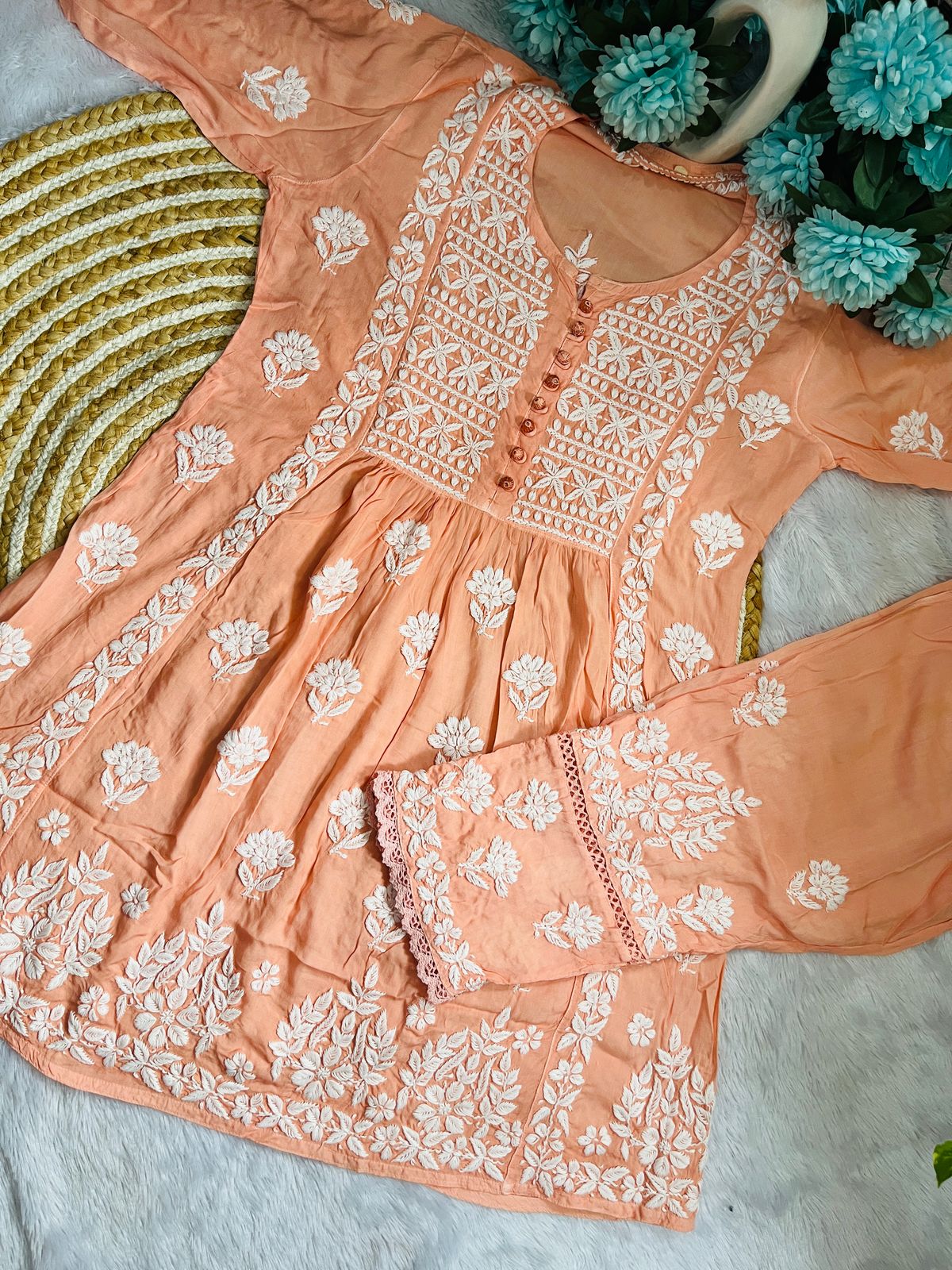 Design: Short Gown with 3D Embroidery + Designer Styled Pants