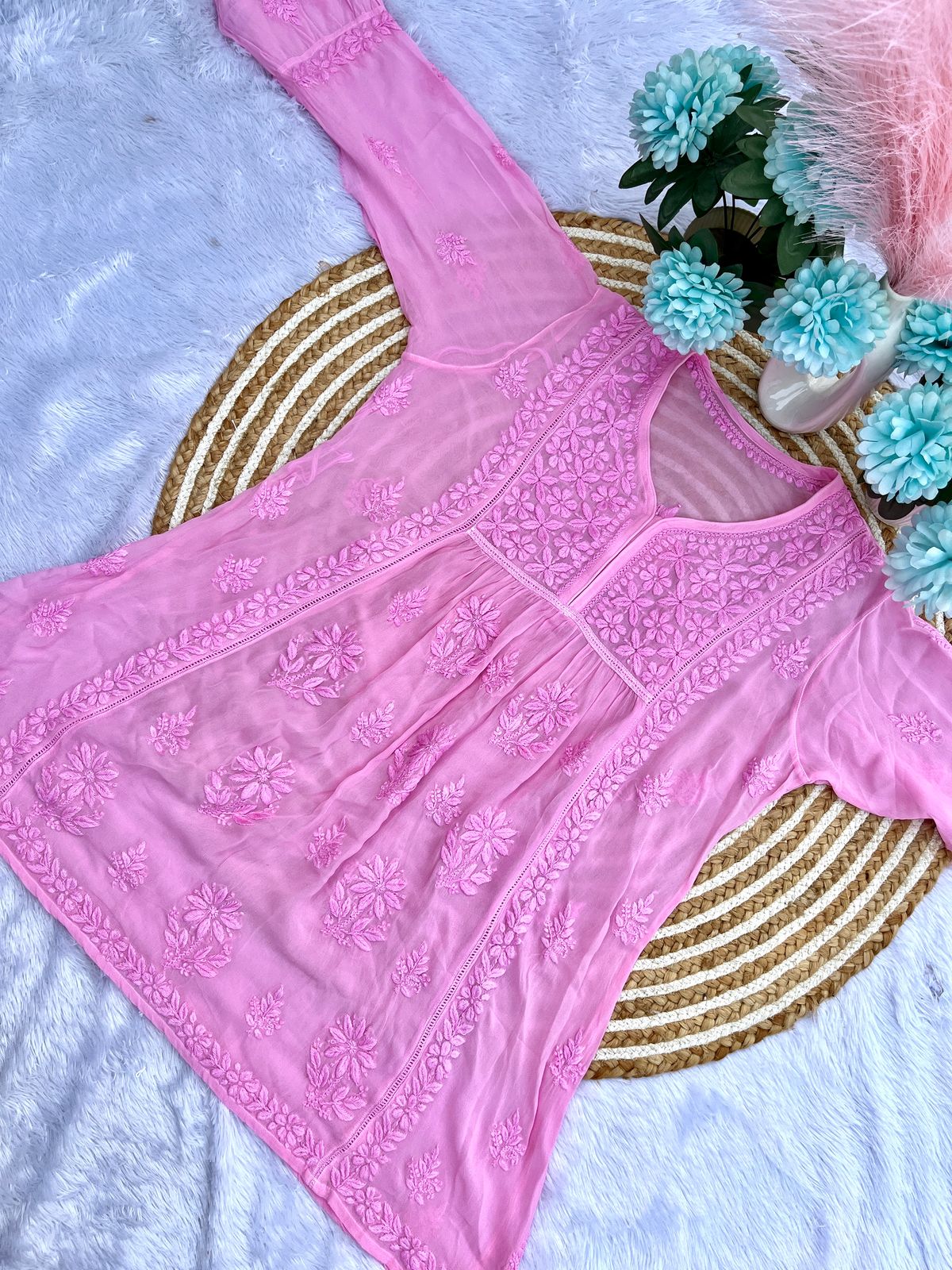 Elegant Viscose Short Gown with Intricate 3D Embroidery β Festive & Party Wear